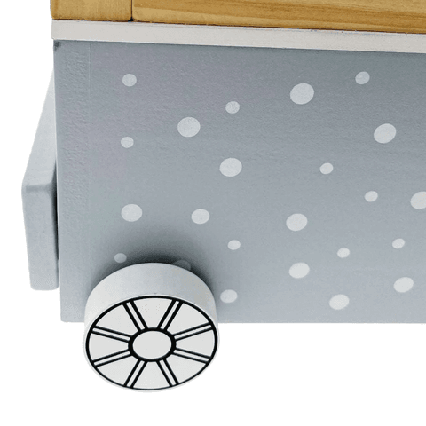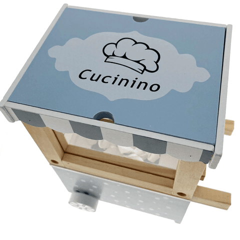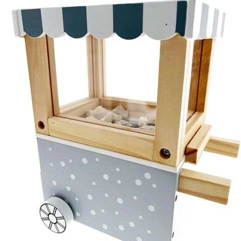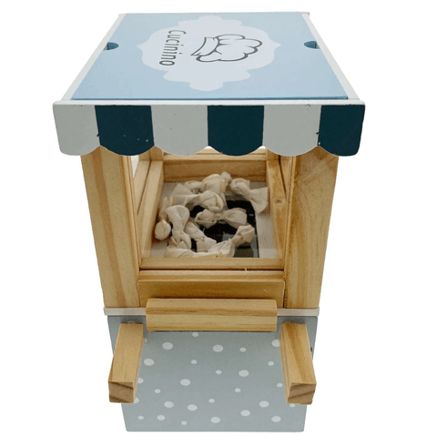 Дрвена машина за пуканки. Преправајте се за играње. Дрвена играчка за храна за кујна.
